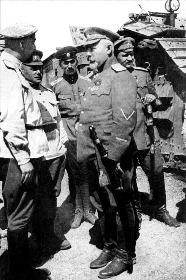 1. Верховный главнокомандующий Антон Деникин общается с офицерами-танкистами.